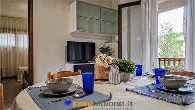 Nella prestigiosa zona di Lignano Pineta, comoda a tutti i servizi, a soli 500 m. dal mare, proponiamo in vendita un appartamento al piano terra con giardino in un complesso di sole 9 unità totali.