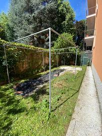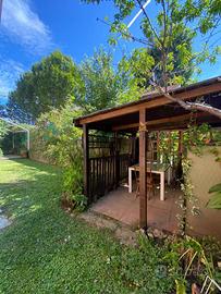 Nel grazioso spazio esterno si trovano un bersò in legno e uno spazio da dedicare all'orto, il giardino è inoltre dotato di un passaggio esterno indipendente.