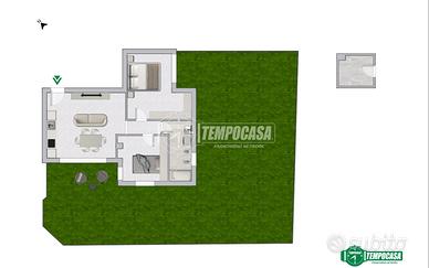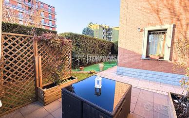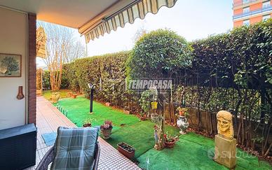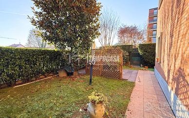 Il vero valore aggiunto di questa soluzione è il giardino privato che circonda l'intero appartamento, accessibile sia dalla porta finestra del soggiorno che da entrambe le camere da letto: uno spazio esterno comodo, vivibile e facilmente sfruttabile.