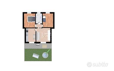 L'appartamento, posto al piano terra, si apre su un luminoso soggiorno dotato di un'ampia portafinestra che conduce al giardino privato, attrezzato con impianto di irrigazione automatica, ideale per momenti di relax all'aperto.