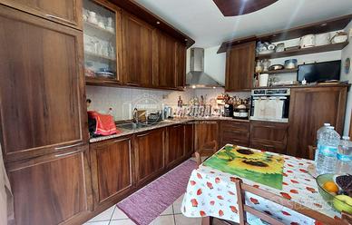 Dal soggiorno si accede alla cucina abitabile, anch'essa con portafinestra e accesso diretto al giardino, creando così una piacevole continuità tra gli spazi interni ed esterni.