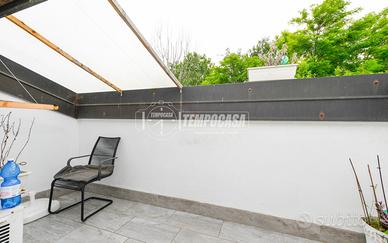 - Ingresso indipendente su giardino privato: Un piccolo angolo verde che accoglie l'ingresso dell'appartamento.
