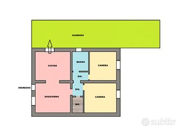 Trilocale con giardino privato. Soggiorno, cucina abitabile, due camere e bagno. Riscaldamento autonomo con caldaia a condensazione. Infissi e porte nuove. Posti auto all'interno della corte. Libero subito. No spese di agenzia. € 158.000 trattabili