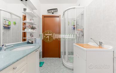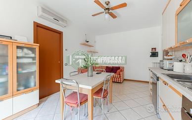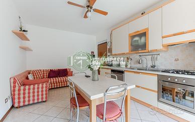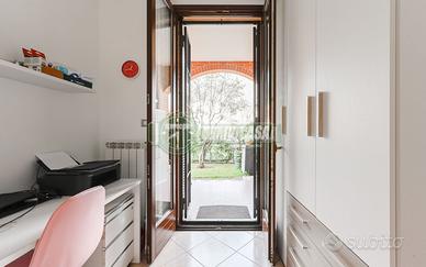 L'immobile è così composto: ingresso su soggiorno con cucina a vista da cui accediamo al giardino, procedendo verso la zona notte troviamo due camere e il bagno provvisto di box doccia. Completa la soluzione il box doppio di 37 mq.