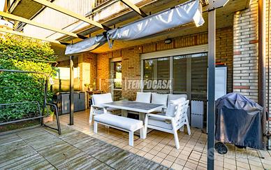 In una zona residenziale tranquilla e di recente realizzazione, all'interno di una piccola palazzina composta da sole undici famiglie, Tempocasa propone in vendita un elegante appartamento al piano terra con giardino, ideale per chi desidera vivere in un contesto moderno, curato e ricco di comfort. L'ingresso si apre su un ampio soggiorno con angolo cottura, un ambiente luminoso e accogliente che rappresenta il cuore della casa. Le ampie aperture verso l'esterno permettono di accedere direttamente al patio e al giardino che abbraccia l'intera proprietà, regalando continuità tra interno ed esterno e offrendo uno spazio perfetto per momenti di relax, cene all'aperto o per ricavare un'area gioco dedicata. Attraverso un comodo disimpegno si raggiunge la zona notte, organizzata in modo funzionale e armonioso. Qui troviamo una camera matrimoniale confortevole, una cameretta ideale per bambini o come studio, un bagno moderno dotato di ampia doccia e un utile ripostiglio con lavanderia, perfettamente integrato nella distribuzione degli spazi. L'appartamento è stato recentemente ristrutturato e si presenta in condizioni impeccabili: la pavimentazione in gres porcellanato effetto legno dona eleganza e calore, mentre zanzariere e tapparelle motorizzate assicurano praticità e comfort quotidiano. L'immobile è inoltre predisposto per l'impianto di climatizzazione e per il sistema d'allarme, garantendo la possibilità di personalizzare ulteriormente il livello di sicurezza e benessere. All'esterno il giardino da 150 mq circa è arricchito da un moderno impianto di irrigazione automatico, pensato per mantenere lo spazio verde sempre curato con la massima semplicità. A completare la proprietà troviamo il box al piano seminterrato, comodamente raggiungibile tramite ascensore, una caratteristica che aggiunge praticità e valore all'intero immobile. Una - Classe: E - IPE: 1.00 kWh/mq anno