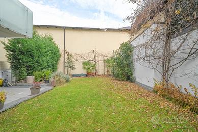 Tra le dotazioni troviamo riscaldamento centralizzato a gas con radiatori, finestre in legno con doppi vetri, impianto d'allarme e irrigazione automatica del giardino. Una cantina di circa 12 m² è inclusa. Un ampio garage può essere acquistato separatamente al prezzo di 35.000 €, mentre ulteriori posti auto si trovano davanti all'edificio. La pulizia delle scale è affidata a una ditta incaricata.
