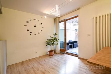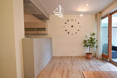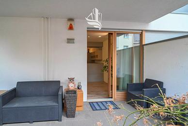 La luminosa zona giorno con uscita diretta conduce alla grande terrazza coperta e al giardino privato di circa 100 m², ampliando sensibilmente lo spazio abitativo durante la stagione calda e offrendo tanto posto per rilassarsi o trascorrere piacevoli momenti all'aperto. Due camere da letto ben sfruttabili, una cucina separata, un accogliente ingresso e un bagno finestrato con doccia completano la disposizione degli ambienti. Nel 2016 la zona living è stata migliorata grazie allo spostamento e alla realizzazione di nuove pareti, mentre cucina e bagno sono stati ristrutturati nel 2019. Anche il manto del tetto con isolamento è stato rifatto recentemente.