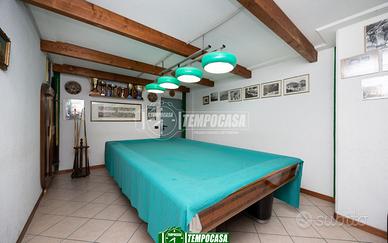 Collegata internamente tramite vano scala, troviamo una AMPIA taverna con CAMINO e FORNO a LEGNA, una SALA BILIARDO, locale lavanderia con box doccia e cantina.