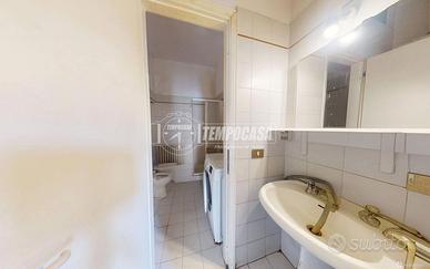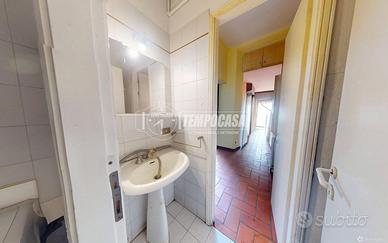 L'ingresso introduce a un ambiente ben distribuito: da un lato la zona notte con una camera matrimoniale servita da balcone e una singola; dall'altro, il soggiorno, un cucinotto funzionale e un bagno senza finestra.