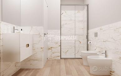 o Rivestimenti bagno in gres effetto marmo Calacatta per un tocco di lusso.