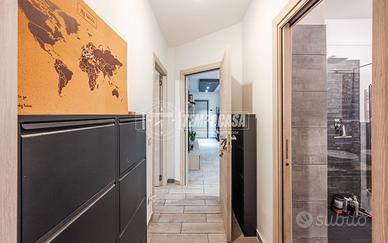 L'immobile è completo di infissi doppio vetro con zanzariere e scuri esterni in legno, con inferriate. Porta blindata e impianto di climatizzazione con pompa di calore. Il riscaldamento è termoautonomo.