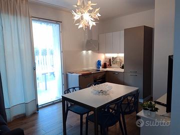 LIBERO FINO A GIUGNO trilocale seminuovo, in complesso residenziale appena costruito a circa 70 mt dal mare, in una traversa del lungomare (Via Marconi).