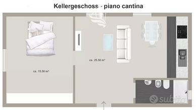 Al piano interrato si trova una sala hobby di circa 41,00 m², composto da soggiorno con angolo cottura, lavastoviglie e forno, camera da letto e bagno finestrato dotato di caldaia autonoma e termosifoni. L'ambiente è pensato come un piccolo appartamento e rappresenta un vero valore aggiunto all'immobile. Un posto auto assegnato completa l'offerta.