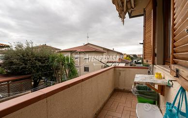 Soggiorno con angolo cottura e balcone, bagno finestrato, una camera matrimoniale e una camera singola ampia;