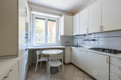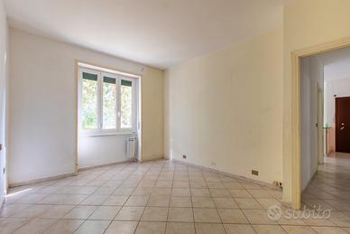 In via Mario Morgantini, 20 traversa di via Rembrandt, in stabile civile ristrutturato del 1956 con verde condominiale e facciate esterne da poco rifatte, appartamento di 92 mq al piano rialzato rientrante rispetto al marciapiede esterno composto da ingresso, ampio soggiorno dotato di 2 finestre, cucina abitabile arredata, 2 camere matrimoniali, bagno finestrato, ripostiglio, cantina e posto auto in uso esclusivo di mt. 4,80 x 2,60 all'interno del Condominio. Appartamento con tripla esposizione, libero subito, abbastanza luminoso per via della mancanza di fabbricati a breve distanza sia nella parte interna che esterna. L'appartamento ha infissi delle finestre in alluminio con doppio vetro. tapparelle di plastica di cui quelle del soggiorno elettriche, impianti interni gas ed elettrico certificati. Altezza interna del soffitto di mt. 2,90. Stabile curato che si presenta molto bene. Impresa di pulizie condominiale con servizio mattutino di ritiro della posta. Riscaldamento centralizzato misto a pannelli e radiatori. Spese condominiali mensili comprensive del riscaldamento di circa € 330,00. Il posto auto è compreso nel prezzo esposto e viene venduto unitamente all'appartamento. Mezzi di trasporto: MM5 San Siro Ippodromo ed MM1 Gambara entrambe a circa 13 minuti a piedi dall'appartamento, Bus 49/63 e 80. Supermercato Esselunga davanti a casa. L'appartamento è abbastanza in ordine per essere abitato già da subito o quanto meno per essere messo a reddito dopo un'imbiancata!