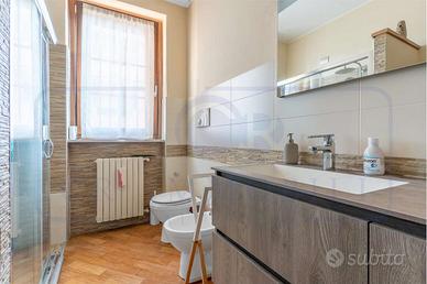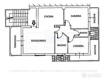 In piccola palazzina del 2006 senza spese condominiali, proponiamo ampio trilocale di 102mq commerciali, posto al primo piano e composto da ingresso, soggiorno con terrazzino, cucina abitabile, disimpegno zona notte, camera matrimoniale con balcone, seconda camera con balcone, doppi servizi (entrambi finestrati).