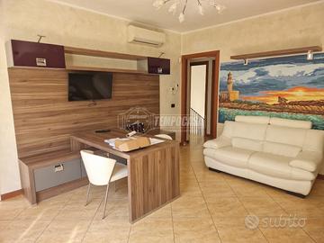 Ha una superficie di circa 70 mq, sorprendentemente luminosa, dotata di porte finestre aperte su un vano a bocca di lupo rifinito in mattonelle finta pietra, particolarmente gradevole e comodo.