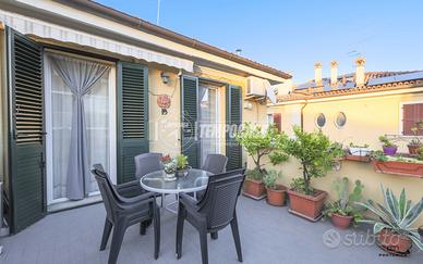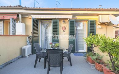 INTERNO: Immobile composto da ingresso, cucina abitabile, due camere, bagno finestrato e terrazza abitabile di 20 mq. L'appartamento è dotato di aria condizionata, infissi in triplo vetro pvc, pavimenti in ceramica e riscaldamento autonomo. Completano la proprietà una cantina e il giardino condominiale dove poter tenere uno scooter.