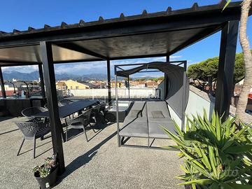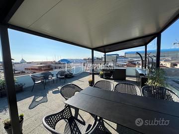 L'appartamento è così composto : ingresso su cucina abitabile con uscita su balcone che porta a una terrazza esclusiva di 60mq , soggiorno, bagno finestrato con box doccia ,luminosa camera matrimoniale e seconda camera con cabina armadio. La soluzione è dotata di aria condizionata, pavimentazione in ceramica e riscaldamento autonomo.