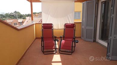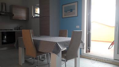 In località Santa Maria, trilocale completamente arredato posto al terzo e ultimo piano. Si compone di soggiorno con angolo cottura, 2 camere e bagno finestrato. Ampia terrazza panoramica e solarium al piano superiore al quale si accede a mezzo scala esterna. Posto auto coperto a completare la proprietà. L'appartamento gode di ottima posizione e vista bellissima sul mare oltreche sulla Diaccia Botrona.