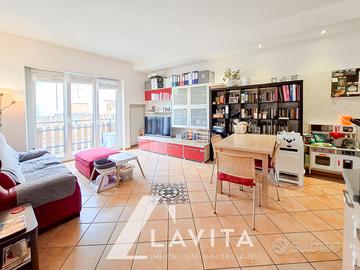 L'immobile è composto da ingresso, spazioso soggiorno e cucina abitabile con accesso diretto alla terrazza di 33mq, due camere da letto, di cui una con accesso ad un secondo balcone ed un bagno finestrato.