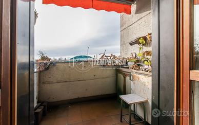 La soluzione ha TRIPLA ESPOSIZIONE nord/sud/ovest ed è così composta: ingresso in AMPIO soggiorno con accesso al TERRAZZO, cucina SEPARATA e ABITABILE con BALCONE;