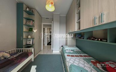 Il terrazzo è collegato alla seconda camera, ideale come cameretta, studio o stanza hobby. La camera matrimoniale, accogliente e ben rifinita anch'essa con illuminazione a LED, presenta una pratica nicchia perfetta per realizzare una moderna scarpiera a vista o una soluzione armadio su misura. Da qui si accede a un balcone con affaccio sull'interno cortile, silenzioso e riservato.