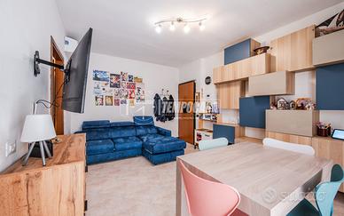 L'appartamento si apre su una zona living luminosa con cucina a vista, che si estende verso l'esterno grazie all'ampio terrazzo esposto a sud, ideale per godersi momenti di relax all'aperto o pranzi soleggiati.