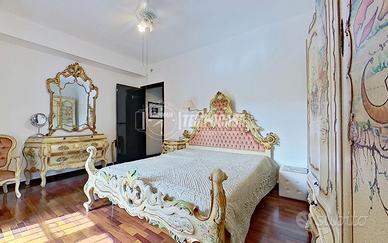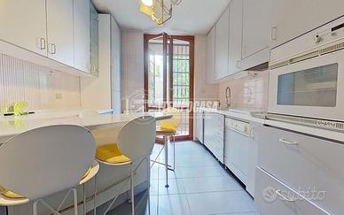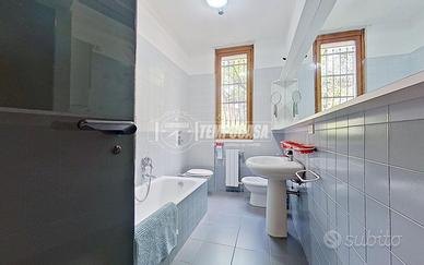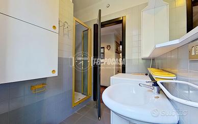 Dall'ingresso proseguendo con il corridoio si arriva alla comoda cucina abitabile con accesso sul secondo sfogo esterno, camera da letto, primo bagno finestrato con box doccia, secondo bagno con vasca e luminosa camera padronale.