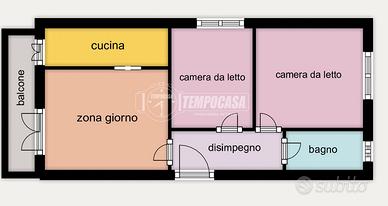 Il disimpegno separa la zona giorno dalla zona notte, composta da due camere da letto ampie e confortevoli, e un bagno finestrato.