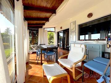 L'immobile è composto da un soggiorno, angolo cottura, due camere da letto, due bagni, ampia veranda finestrata sul fronte casa per poter essere utilizzata anche fuori stagione, veranda coperta sul retro con zona barbecue con lavandino e doccia esterna.