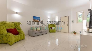 L'appartamento servito da ascensore e scale è dislocato su due piani. Al piano terra troviamo un soggiorno con tavolo e sedie da pranzo e un comodo divano, angolo cucina, un bagno con box doccia, ed uno spazio esterno attrezzato con mobili da giardino, al primo piano invece, troviamo due camere da letto matrimoniali e due bagni uno con box doccia e uno con vasca. L'appartamento dispone di posto auto riservato al piano -1 con ingresso direttamente nell'appartamento, lavastoviglie, piano cottura elettrico, lavatrice, climatizzatori in tutti gli ambienti e connessione internet wifi gratuita.