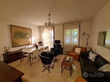 TRILOCALE DI 107 MQ, piano primo CON ascensore. Ingresso, ampio soggiorno e sala pranzo con terrazzo, cucina separata abitabile con balcone, due camere da letto, due bagni (uno con doccia ed uno con vasca) entrambi con finestra, vari parcheggi condominiali. Caldaia nuova da Novembre 2023, subito abitabile, tre lati liberi, esposizione SUD-OVEST-EST. Edificio ben abitato. Cantina di ulteriori 4,5 mq.