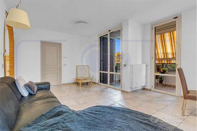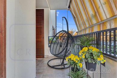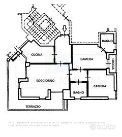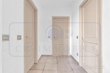 L'appartamento è composto da un accogliente e spazioso ingresso, ampio soggiorno con uscita su un comodo terrazzino, cucina abitabile con secondo accesso al terrazzo, disimpegno zona notte, camera matrimoniale con bagno privato finestrato, seconda camera e secondo bagno finestrato.