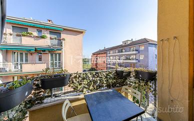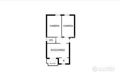 L'immobile, molto luminoso grazie alla doppia esposizione est/ovest, è composto da ingresso con disimpegno, soggiorno con accesso diretto al terrazzino, cucinotto, due ampie camere matrimoniali e bagno finestrato.