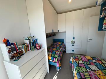 Parma- Zona Campus- proponiamo in vendita elegante appartamento che ridefinisce il concetto di abitare contemporaneo. Situato al primo piano di una palazzina signorile di recente costruzione, l'appartamento si sviluppa su una superficie di 96 mq, dove il design e l'estetica delle finiture di pregio incontra le più avanzate tecnologie abitative. Varcando la soglia, si viene accolti da una raffinata atmosfera e da una straordinaria luminosità naturale, enfatizzata da una grande vetrata scorrevole e da una doppia esposizione che inonda ogni ambiente di luce e confortevole relax. o Zona Living: Un ampio e armonioso salone con angolo cottura, progettato per essere il cuore conviviale della casa, dal quale si accede su una splendida loggia principale, un vero e proprio salotto all'aperto baciato dal sole durante tutto l'arco della giornata. Lo spazio è fluido, razionale e pronto a ospitare momenti di relax o serate tra amici. o Zona Notte: Un corridoio ben distribuito conduce alle due camere da letto di cui una padronale e l'altra con accesso ad una riservata loggetta. o I Servizi: Lavanderia e bagno moderni e finemente rifiniti garantiscono il massimo della funzionalità e del comfort per tutta la famiglia. o Garage con bascula motorizzata e facilità di accesso con ampia area di manovra. o Comoda cantina accessibile direttamente dall'ascensore o Sistema di riscaldamento a pavimento ad alta efficienza, impianto condominiale a pompa di calore con contacalorie per la gestione autonoma della temperatura interna, termostati nella zona giorno e zona notte, o Climatizzazione con pompa di calore e split di design in ogni ambiente, per un microclima perfetto in ogni stagione. o allarme volumetrico e perimetrale, allarme su tutti gli infissi e porta di ingresso. o videocitofono. o tendoni sole elettrici con sensore vento, o tenda oscurante su porta finestra, o Infissi in legno con apertura a vasistas in triplo vetro a taglio term