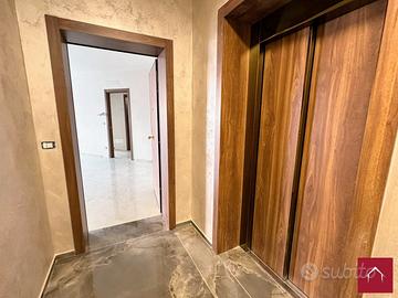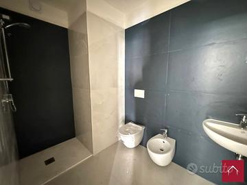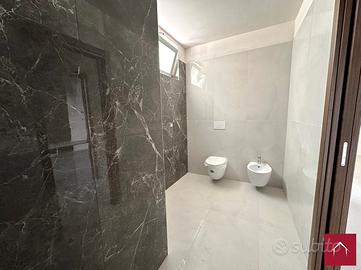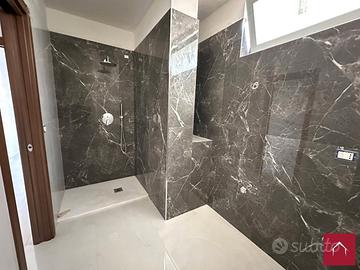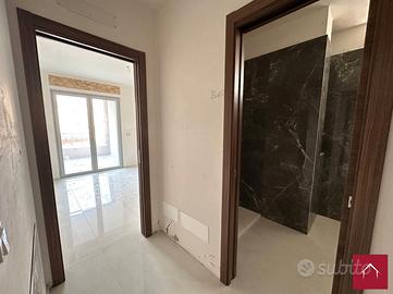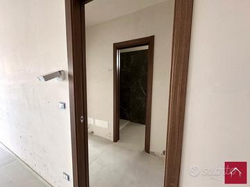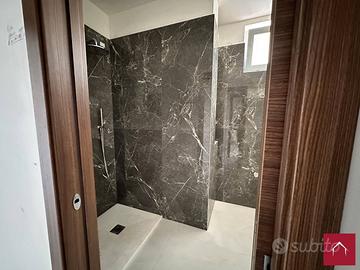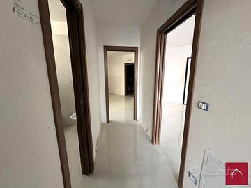 L'appartamento è composto da soggiorno open space, due camere da letto, due bagni fra cui uno in camera da letto matrimoniale e un'ampia veranda vivibile, sarà provvisto di porta d'ingresso blindata, videocitofono, pompa di calore, impianto di riscaldamento a pavimento, infissi a tagli termico con doppio vetro e predisposizione aria condizionata.