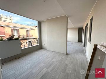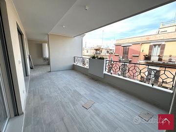 Proponiamo in vendita, trilocale con ampia veranda (112,50mq interni e 38,10mq esterni) in nuova costruzione, al quarto piano di un fabbricato avente l'ascensore, in zona Centro a Barletta, più precisamente, in Via Pier Delle Vigne, con box auto (18,20mq) di pertinenza al primo piano interrato.