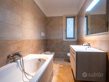 La zona notte è composta da una camera matrimoniale e da una camera singola, entrambe con uscita sul terrazzo, oltre a un bagno pratico e ben rifinito con anticamera adibita a zona lavanderia.