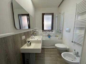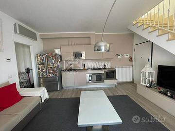 L'appartamento, costruito nel 2011, si sviluppa su due livelli, con ingresso al primo piano e si caratterizza per una combinazione di modernità e comfort, grazie a finiture curate nei minimi dettagli e a spazi ampi e ben organizzati. Al piano di ingresso troviamo un luminoso soggiorno con angolo cottura, progettato per unire la zona giorno e la cucina in un unico ambiente accogliente e funzionale. Questo spazio si affaccia su un terrazzo abitabile, che offre l'opportunità di sfruttare una zona esterna Accanto al soggiorno si trova una camera matrimoniale di generose dimensioni, con ampie finestre che garantiscono un'ottima illuminazione naturale durante il giorno. Il bagno situato su questo piano è rifinito con materiali di alta qualità: la vasca, incassata in un ambiente elegante, è affiancata da un termoarredo che, oltre a riscaldare, aggiunge un tocco di design e praticità. Gli spazi del bagno sono ottimizzati, e la scelta dei rivestimenti e dei colori crea un'atmosfera rilassante e moderna. Una scala interna, comoda e ben rifinita, conduce al secondo piano dell'appartamento, dove troviamo una seconda camera da letto, pensata per essere la suite padronale. Questo ambiente è stato concepito per offrire il massimo comfort: lo spazio abbondante permette di creare un'area relax oltre alla zona notte, e la cabina armadio integrata è un elemento di grande praticità, capace di contenere un intero guardaroba senza ingombrare la stanza. Il bagno privato al secondo piano è altrettanto rifinito con cura e attenzione ai dettagli. Qui troviamo una doccia ampia, con piastrelle dal design moderno e una finestra che non solo garantisce ventilazione naturale, ma riempie l'ambiente di luce. Uscendo dalla camera si accede ad uno dei punti di forza dell'appartamento: un enorme terrazzo abitabile di ben 50 mq. Questo spazio esterno offre numerose po - Classe: C - IPE: 1.00 kWh/mq anno