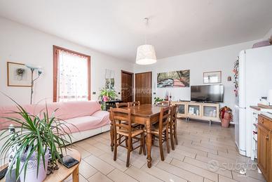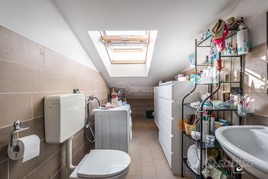L'immobile è composto da ingresso su soggiorno con angolo cottura, una camera matrimoniale, una seconda camera mansardata, due bagni e un garage direttamente collegato all'abitazione per maggiore comodità.