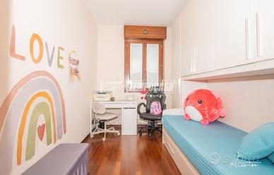 Per finire completa la soluzione un doppio garage di ben 26 mq a piano terra, piccola porzione di giardino rogitato nel retro della palazzina e possibilità di posteggio auto all'interno del cortile condominiale; Il riscaldamento è autonomo e le spese di condominio sono di 800€ annuali circa.