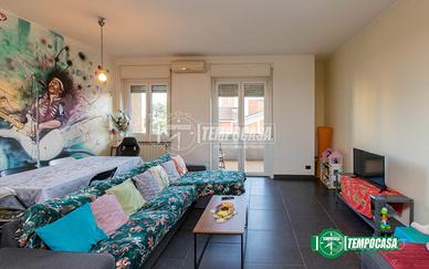 La zona giorno è open space, con un soggiorno luminoso che si affaccia su un comodo terrazzo, perfetto per trascorrere momenti di relax all'aperto. La cucina, anch'essa con affaccio sul balcone, è ben integrata nell'ambiente living, creando un'atmosfera accogliente e ideale per la convivialità.