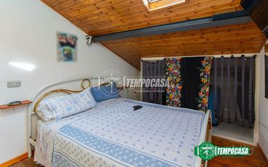 Una scala interna conduce al piano superiore, dove si sviluppa la zona notte, composta da due camere da letto, entrambe con spazi ben sfruttabili e travi a vista che donano calore e personalità all'ambiente. Completa il piano un secondo bagno, a servizio della zona notte.