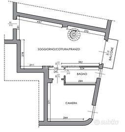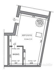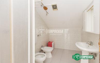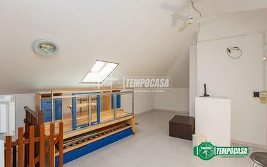 Una scala a chiocciola dal soggiorno conduce alla mansarda, che ha anche un ingresso indipendente. Uno spazio ampio e versatile, ideale come studio o ulteriore zona living, dove si trova anche un secondo bagno, dotato di doccia per una maggiore comodità.