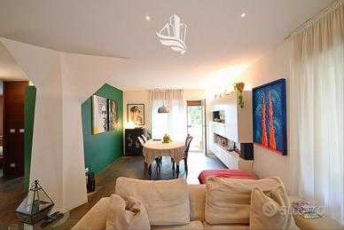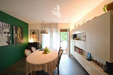 L'appartamento, situato al piano rialzato, offre un accogliente soggiorno con cucina a vista, due camere da letto - una delle quali con bagno privato -, un ulteriore bagno e tre balconi che garantiscono piacevoli spazi all'aperto.