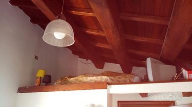 Finemente ristrutturato (mobilio ed elettrod. venduti insieme all'appartam. ) panoramico e luminoso, situato al 3 piano (l'ultimo), nel centro storico di Montecelio, esposto a sud-sudovest, provvisto di musica in tutte le stanze e antifurto volumetr. Ha: - 4/6 posti letto; - un piccolo ingresso con finestra e ripostiglio, un tiro elettrico; - un piccolo soggiorno arredato con finestra, camino e predisposizione aria condiz. , impianto home theatre, divano letto da 1 piazza e mezza, tv LCD con presa sat e terrestre, presa telefono e citofono; - una cucina abitabile arredata con portafinestra, caldaia a condensazione Vaillant per il risparmio energetico con predisposiz. pannelli solare termico, sensore blocca gas, lavastoviglie e frigo entrambi Bosch di classe A+, presa tv; - disimpegno con lavatrice, ripostiglio, cronotermostato termosifoni; - un bagno arredato con finestra, cabina doccia in vetro, sanitari e termoarredo; - una camera con finestra, parquet prefinito naturale, letto matrimoniale contenitore, armadi, presa telefono e tv, aria condizionata; dalla quale si accede ad un soppalco aperto calpestabile con letto singolo, prese telefono e tv e ad un ripostiglio sottotetto. NO spese condominiali, né ascensore. - un serbatoio d'acqua di circa 600 litri con pompa, nel caso la pressione diventi insufficiente. Il tetto è di tipo ventilato e isolato con pannelli spessi 12cm, sono a vista i travi, travetti e tavolato in castagno, 4 finestre (una per stanza) sono orientate verso sud, mentre una portafinestra, quella della cucina, è orientata verso est. Gli infissi sono in legno all'interno e alluminio all'esterno, con doppi vetri. Per arrivarci occorre percorrere alcune stradine pedonali, percorribili anche da motorini e trattori, ovvero ci si arriva in due modi alla casa, uno più breve (80m) con tre vicoli in salitella (che si possono fare in moto): ed uno, dal parcheggio multipiano libero, con un tragitto piú lungo ma piú pianeggiante (290m).