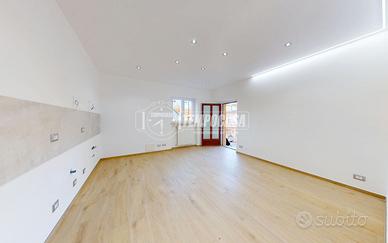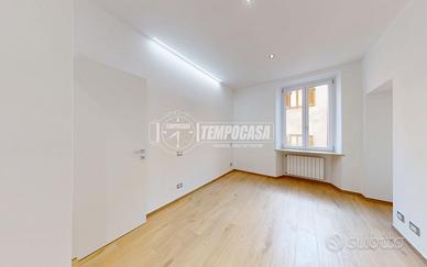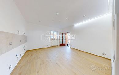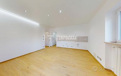 ingresso sulla zona giorno con cucina a vista, antibagno e il bagno finestrato, completamente rinnovati, offrono comfort e funzionalità con uno stile raffinato, due camere da letto una luminosa e silenziosa, l'altra con accesso al balconcino.