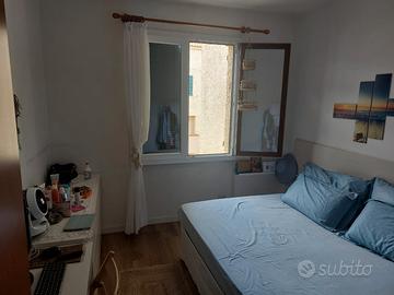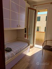 Luminoso soggiorno con angolo cottura attrezzato di frigorifero, lavatrice e lavastoviglie, dotato inoltre di Smart TV e Wi-Fi incluso. La zona notte offre una camera matrimoniale e una cameretta con letto a ponte, ideali per garantire comfort e funzionalità.