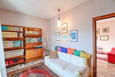 La soluzione, sita al terzo ed ultimo piano senza ascensore di un elegante contesto recentemente ristrutturato, è così disposta: ingresso, luminoso soggiorno con accesso al balcone, cucina abitabile con accesso al balcone, disimpegno, due camere da letto di cui una con accesso ad un secondo balcone e bagno finestrato con vasca.